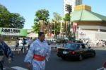 両国に到着すると、ちょうど五月場所が開催されていて、国技館(東京都墨田区)周辺もごったがえしていました。格闘技というか、肉弾戦というか、身体と身体がぶつかり合うスポーツはちょっと苦手なもんで、相撲はよくわかりませんが、いわゆる入り待ちっていうんですか、幕内の関取が現れるのを待っているようでした。