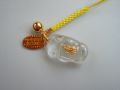 打出の小槌(ストラップ) ¥980商売繁盛、福の神の恵比寿様、大黒様。サイコロはどこ転がしてもいい芽が出るサイコロ、災難を切るかえると心臓、肝臓、腎臓、すい臓、脾臓、身体に命令する脳を守るひょうたんが、縁起のいい打ち出の小槌に収まっています。縁を結ぶ祈願された5円玉も一緒に。
