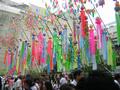 仙台に行ったのは、もうン十年前なのでよく覚えていないのですが、平塚の七夕飾りは仙台より低いというのか、人に近いような気がしました。大きくてさまざまな色や形の七夕飾りが頭上近くではためいているのは、なかなかの迫力です。