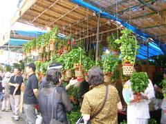 この縁日には浅草寺境内にほおずきの市がたちます。四万六千日のお参りのおみやげにほおずきが売られたことから、いつしか「ほおずき市」といわれるようになったようです。毎年7月9、10日の両日、境内一帯にたくさんのほおずき売りの出店が並び、たこ焼きやお好み焼きの店も出で、多くの人で賑わっています。