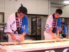 ながーい飴を包丁でトントンと刻んで、一口大にした「とんとこ飴」を作りながら、売っているのでした。その包丁捌きが実に軽妙でリズミカルなので、しばし見とれてしまいます。どんな味かとついつい買ってもみたくなる(笑) 実は、これとは別な薬草入りの咳止め飴が“本当の”名物らしいんですけどね。