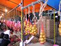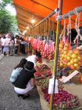 参道にはすももをネットに入れて吊り下げている露店がずらり。カゴをもらって、好きなものを選んでグラムで買うこともできます。どの店も、だいたい1袋1000円。いわゆる「すもも」とソルダムとか、ホワイトなんたら(^_^;)とか、けっこう何種類かのすももが並べられていました。