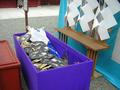 これで扇ぐと農作物の害虫は駆除され、病人は直ちに平癒するっていうんですけど、それでは医者は商売あがったり(笑) 玄関先に飾ると魔を祓い幸福が訪れるといわれ、われさきにと求める人でけっこう賑わっていました。去年、受けた団扇をお焚き上げのために返納する場所もあり、団扇や扇子を受けた人は来年も来なくちゃだめよ〜という感じですか(^_^;)