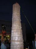 夕暮れが迫る頃、メインストリートの歩道脇には一山の土が盛られていきます。そして車両通行止めになる16時30分、土は道路の中央へ運ばれ大松明を支える土台に変身。そばには大松明がゴロリと寝そべって立たせてもらうのを待ちわびているようです。