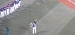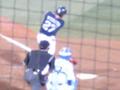 期待に応えて、「代打オレ」、やってくれました。打席では、360度古田コールで、ライトスタンドも「かっとばせ〜、古田!」です。ピッチャー吉見はちょっとお気の毒(笑) ホントにかっ飛ばされちゃったし(^_^;) ネット裏は、最後の写真を撮ろうとする人たちがどっと集まり、席に座っている人から「見えなーい! 座れ〜!」と怒られてました。と、他人事のように言いながら、私も写真を撮りに行きました(^_^;) 座席より前にはでなかったので、怒られなかったけど。新庄のときにそれと知らずに走っていって怒られたので、学習してました〜(笑)