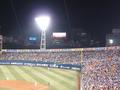 お空の下で野球をやっている関係もあって、横浜スタジアムの最終戦は相手がスワローズであったり、カープであったりすることが多いですね。そして、なぜか全日程の最終日であることも多いような気がします。今年もごたぶんにもれず(笑) 雨流れがさらに雨で流れた再々試合になったカードです。しかも、最終戦がナイトゲームというのも珍しいのではないかと。