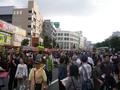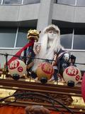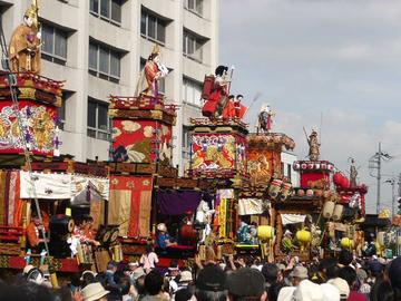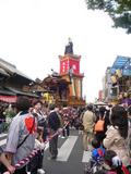 夜になると交差点で山車同志が出会い頭にお囃子の競演をするという「曳っかわせ」というのが行われるそうです。山車の喧嘩?(笑) まさか喧嘩ではありませんが、違うテンポのお囃子を負けじと演奏しあい、舞を競うそうです。それを見るために午後遅くなってからも多くの人々がまだまだやってきます。