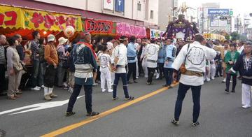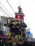 1台ずつお囃子と舞を披露し、全部の山車が終わると1台ずつ街へと繰り出して行きます。これらの山車が去ったあと、今度はもう一つの部隊がやってくるのでしょう。その前に、残りの7台を探しに賑わう道へ出かけていきました。