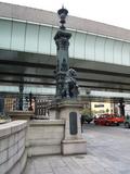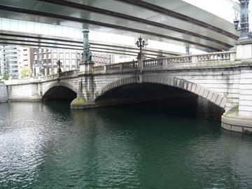徳川家康が力を入れた道路網の整備計画よって架けられたもので、1604(慶長9)年に五街道の基点とされました。奇しくも三代将軍家光の生まれた年ですね。初代は、(もちろん)木の橋で、江戸の華の火災などによって何度も架け替えられています。現在の橋は第19代なんだとか。1911(明治44)年に架けられたもので、石造アーチ橋です。国の重要文化財に指定(1999年)されているんですってね、知らなかった(^_^;) 東京オリンピックのときに上に首都高速道路が建設されたため、いまのような風情になったそうな。こういうのは風情とはいいませんねぇ(-_-;)