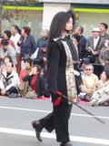 浅草に着いたのだって、午後も遅めの時刻でしたが、パレードなので追いかければよし。ちょうど、浅草駅を降りたら、行列は雷門にさしかかっていました。ラッキー。目の前です。が、すごい人ごみで、かつらのちょん髷ぐらいしか見えません。移動、移動。放送席らしきところのそばで人垣が割れているところを発見、なんとかもぐりこみました。
