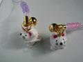 打出の小槌(ストラップ) ¥980商売繁盛、福の神の恵比寿様、大黒様。サイコロはどこ転がしてもいい芽が出るサイコロ、災難を切るかえると心臓、肝臓、腎臓、すい臓、脾臓、身体に命令する脳を守るひょうたんが、縁起のいい打ち出の小槌に収まっています。縁を結ぶ祈願された5円玉も一緒に。