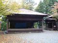 このお寺には文化財がいっぱい。広い境内の左脇には三十番神堂があります。三十番神堂は法華経を守護する三十体の神像を祀る建物だそうですが、明治期の和洋建築。柱や鴨居などに細密な彫刻が施されています。本堂も明 治時代の建築だそうです。珍しい村芝居の回り舞台もありました。いまでも、使っているのでしょうか。