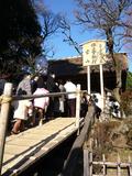 お参りの人の行列の最後尾は参道がバス通りに届く辺りまで。一昨年、確か元旦に行ったときはバス通りにはみ出していたので、やっぱり元旦のほうが混むのかな。門前のお蕎麦屋さんの話だと、今年はバス通りまでどころではなく、通り沿いに折れ曲がって列が続くほどだったそうです。例年より参詣客が多いので「キムタクが来ているらしい」というデマがとんだほどだったとか(たぶん、デマでしょ?)。山門の入り口は、まるでテーマパークの入場制限のようにテープが張られ、一回に何人までと区切って入場させていました。初詣も楽じゃないですね。