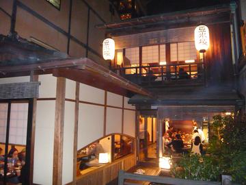 雰囲気のあるお店で、いまの季節は使われていませんが、鴨川を見下ろす「床」があります。床に出ると、鴨川にかかる橋が暗闇に鮮やかに浮かび上がってきれい! 寒さにもめげず、カップルや犬を連れた人が河原を散歩していました。「床」の季節にまた訪れてみたいお店です。