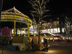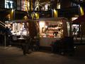 まず、連れて行ってもらったのが「新風館」。ここはいわゆるテナントビルですが、建物は1926(大正15)年に京都中央電話局として生まれた洋館で、1983(昭和58)年に京都市登録有形文化財第1号に登録されたものだそうです。レンガ造り風の外観、レトロな雰囲気が特徴で、2004年度のグッドデザイン賞建築・環境デザイン部門、第12回BELCA賞ベストリフォーム部門を受賞したそうです。屋台型店舗を出したい人は京都市の助成が受けられるとか。 テナントは30社以上で、中庭には小さなステージも設えてありました。