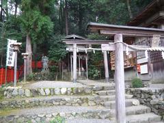 大河内山荘の庭園の下ぐらいに当たるところに「御髪神社」という小さな社がありました。日本で唯一の髪の神社だそうです。美容師さんや理容師さんがよく訪れるのだとか。きれいになりたい人はお参りするといいそうです。御髪神社の前には小倉池がありました。水は濁っているのですが、山を映した鏡池になっていてなかなか風情があります。