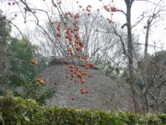 とはいえ、もともの落柿舎は1770(明和7)年にはすでになく、今の落柿舎は1895(明治28)年に再建された建物だそうです。庭にまだ柿の実がわずかに残っていました(作り物じゃないよね?)。