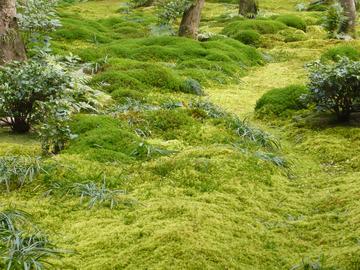 庭も大きなものではありませんが、苔が見事です。見本が出ているだけで20種類ぐらいの苔がありました。素人には似たように見えるので、どの苔がどの辺にあるのかはよくわかりませんが、庭一面を緑に染めて、美しいものでした。木々が葉を落としている中で、鮮やかに色彩を放っています。