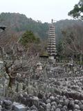 本堂は1712(正徳2)年に寂道により再建されたそうですが、それより何より境内のおびただしい数の石仏に圧倒されます。約8000体あるのだとか。1903(明治36)年頃に、化野にある多くの無縁仏を掘り起こして集めたものだそうです。正面には「撮影禁止」って書いてあったのですが、そのときにはもう、脇のほうから写真を撮っちゃった後でした。何で撮影禁止なんでしょう? 変なモノが写っちゃったりすることがあるとか?