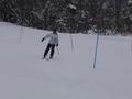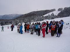 今日はスキー大会の初日で、回転競技を行いました。昨日降った雪でバーンコンディションは最高。天気もうす曇りながら風もなく、見通しもよく、選手は楽しいレースができた模様。ゴール付近の気温は、−2.9度、体感温度はそう寒くはなく、旗門員などの役員の人々も比較的、楽だったようです。