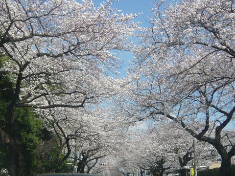 友人の所へ遊びに行く途中で、渋滞にはまりました。でも、渋滞でもOK。きれいな桜並木が満開で、イライラを解消してくれます。というより、この桜並木に眼を奪われたドライバーのノロノロ運転が渋滞を呼んだのでしょうか?