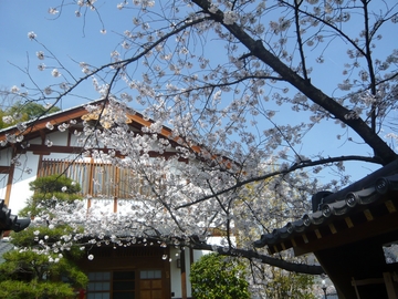 庭園には大輪の花を咲かせる牡丹園があるそうですが、あいにく牡丹にはまだちょっと季節がはやく、残念。108(実際には109)あるお寺には、桜が有名なところ、梅がきれいなところ、紅葉が評判のところと、風景もいろいろ楽しめるはずなのですが、順番を守って廻っていると、なかなかちょうどいいときにめぐり合えません。もったいないような気もしますが、季節外れは季節外れなりの風情もあるだろうと思うしかありませんね。1本ですが、桜もせいいっぱい咲いていました。