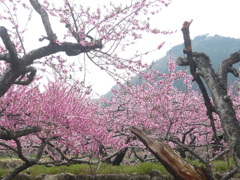 先々週、釈迦堂PAへ桃の花を見に行ったときは、まだまだつぼみでした。桃農家のおじさんが、「来週は咲かせて見せる!」と豪語していたので、実際には2週間近く経ってしまいましたが、今日、また行ってみました。今日は、ほぼ満開! 甲府盆地にピンクのジュータンが敷きつめられていました。
