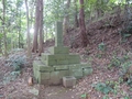 で、登る、登る。足元は一応、階段や石段になっていますが、雨で浸食されて1段1段が高く、まさに「よっこらしょっ」という感じでしか登れません。ここに来ていることは誰にも言ってこなかったし、足を踏み外して骨折でもしたら、発見されるのに1週間ぐらいかかるかも……と、思って慎重に登ります(笑) しかもシーンと静まりかえっていて、自分の「ぜーぜー」言ってる息遣いだけが聞こえ、それをときどき甲高いカラスの声が破ります。