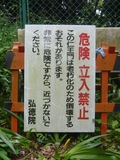 「どんだけ登ればいいんだよ!」と引き返したくなったころ、「四丁目」の石標が。下が浜当目3丁目だったから、ここから4丁目? それともここは地獄の4丁目? なんだか不気味だなぁと思いつつ、30分近く登ったでしょうか、香集寺仁王門がありました。「門があるなら、もうすぐだろう」と思いましたが、まだ、それからけっこうあった(-_-;) しかもこの門、「老朽化で倒壊の恐れがあるから近づかないで!」ですよ〜。