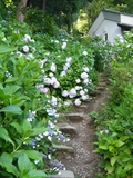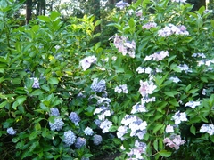 もう終りかけてはいますが、客殿の裏の山、経堂のあるあたりから、本堂の裏や脇の山は紫陽花がさまざまな色合いで咲き競っています。1万株も植えられているそうです。6月になると紫陽花見物をかねた参拝者がたくさんやってくるとか。