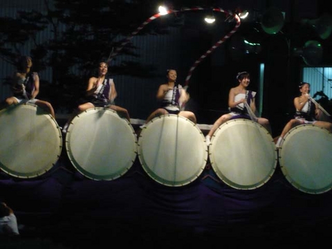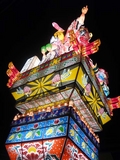 すごいなぁと思う作品は、やっぱり何かの賞を取っていますね。連続33年参戦、と書いてある台もあります。伝統の行事だなぁと思います。そして、若い人の参戦が多いのにも驚かされます。4連、5連の太鼓をたたいているのは、みんな若いおねえさんやおにいさん。きりりとさらしを締めて、若者が元気な街なのだなぁと思いました。