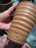 前日に、理桂作品のカップでビールをいただいたのです。単なる缶ビールだったのですが、そのビールは普通のグラスに注ぐより、ずっとキメの細かい泡になり、味もマイルドですごくおいしいビールに変身していました。私はビール党ではないのですが、これならイケル!という感じ。このカップでお茶をいただいてもすごくおいしそうだなぁと思ったのです。それで、この工房へつれてきてもらったというわけです。