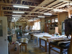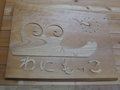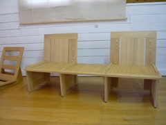 完成したステンドグラスをそのまま置いておいたのでは元の木阿弥になりかねないので、持ち主のお寺さんが、「木工で木枠を作って衝立にしよう」と目論まれたのだとか。そこで、修復のなったステンドグラスを持ち込んだのが「わにもっこ」です。青森は「ひば」をはじめ、家具や木工材料になる素晴らしい材木の産地。大鰐にある木工工房「わにもっこ」では、これらがシンプルで木の香りが漂う素敵な椅子やテーブル、木のおもちゃ、食器などに加工されていました。ここで、修復されたステンドクラスにも立派な枠が作られるのだそうです。