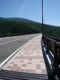 この大橋は鉄製ですが、金属は温度の変化で伸び縮みしますね。八甲田山麓ですから、このあたりの冬の寒さは厳しく、夏との温度差は鉄の部分で 50℃にもなるのだとか。夏と冬では左端と右端でそれぞれ10センチ以上の差ができるそうです。それって大変なことではありませんか! そのままでは橋は見事に崩落……、ということにならないように、橋の両端には長さを調節する装置がつけられているそうです。日本の架橋技術ってすごいものですねぇ。