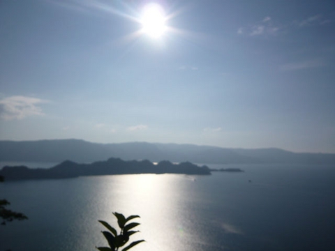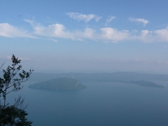 まず最初に眺めたのは滝の沢峠からの十和田湖。生い茂った樹木の向こうに見える水面は穏やかで青く、涼しげでした。