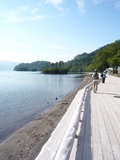そして、ここに訪れた人は、まず必ず行くだろう乙女の像まで歩いてみました。散策コースができていて、湖面からの風が肌に心地よい道です。途中に木道のようなものができていて……、前にはなかったような気がします。どんどん整備されているのでしょうね。いいような、寂しいような。