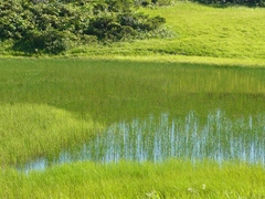 ロープウエイで登っていく途中で植物分布が変わっていくのがわかったり、たった30分歩いただけでも、樹林あり、湿地帯あり。うっそうと茂る木々の間に、可憐な花を見つけたり。あちこち壊れている上に、体力にはからっきし自信のない身にも、山歩きの好きな人の気持ちが少しだけ、わかったような気がします。遠くに美しい姿の岩木山を望むこともできました。遊びに行ったときの晴天確率が高いなぁ、わたし。