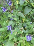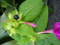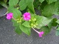 春ほど花が咲き誇っているわけではありませんが、道を歩いていていろいろな野の花に出会いました。あ、オシロイバナ発見。本名はなんというのか知りませんか,子どもの頃、よくこの実をつぶして白い粉を出しては遊んでいました。一粒だけど、懐かしい黒い実も見つけました。