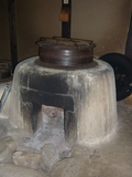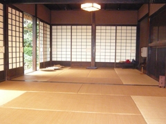 もう一つの民家、加藤家はごく普通の農家だったのでしょうか。広々とした畳の続き部屋が一つと、板の間の囲炉裏の間があり、土間に下りるとかまどからにかけられた鍋からいまにも弓削が上がりそうです。埋め込まれた甕のようなものには、いったい何がしまわれていたのでしょうか。