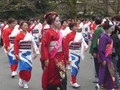駅前で地図を貰って、すでに出発している行列を前から迎え撃とうと出発。途中でおいしそうな豚汁とおにぎりを売っている屋台に出会い、そこでみごとに撃沈されました(笑) 肌寒い中での豚汁は本当にうれしいものです。やっと箸を置いて前進すると、行列はすでに昼休みに入っていました(^_^;)
