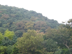 裏手のロープウェーで山頂まで行ってみました。ここには奥の院、思親閣があります。ロープウェイから眺める山々は秋の気配を濃厚にみせつつ、まだ持ちこたえているといった風情。一面の紅葉という風景ではなくてもなかなか風情があります。自分の乗っているロープウェイの影がくっきりと木々の上を走っていくのもおもしろい風景でした。