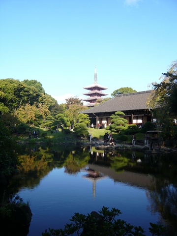 伝法院は浅草寺の院号だったそうが、いまは住職の居住する本坊の称号となっています。お庭は、大泉池を中心とする廻遊式庭園。江戸時代初期の築造で、小堀遠州作といわれています。五重塔を映し出す池は美しく、風情があります。が、この日はたいそうな人出で、情緒を味わうどころではありませんでした(^_^;)