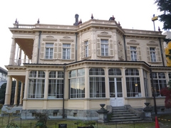 1896(明治29)年に竣工した洋館は、口が「ぽっかーん」となってしまうような建物ですが、内部もものすごく立派で凝っています。靴を脱いで中に入ることができるのですが、ご邸宅というよりは、むかしの立派な学校のような感じがしました。ベランダ・コロニアル様式というのだそうです。「マントルピースだけで、いくつあるって?」という感じ(笑) この洋館のベランダから、広々としたお庭が見渡せます。