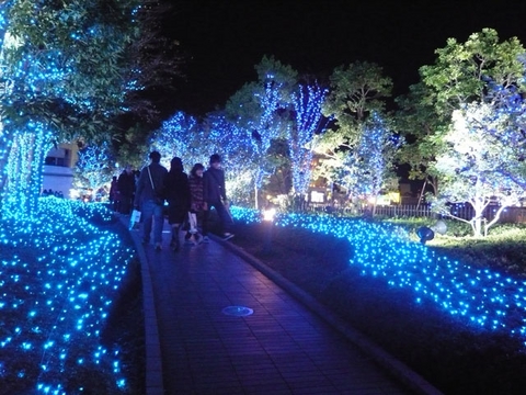 ずっと工事中で鬱陶しいような新宿駅南口ですが、今年もサザンテラスが盛大にイルミネーションで飾られています。昨年はグリーン基調だったような気がするのですが、今年はブルーとホワイト。きれいではありますが、なんだか寒そうな配色で。世相を反映してますか? というか、夜は東京も本当に寒くなってきました。寒い夜に青と白では、よけい寒い感じがするというか(笑) でも、両脇に光の花が咲く小道など、とてもきれいです。