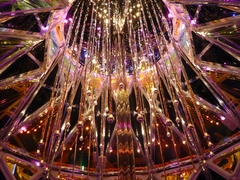 建物から広場に出たところには華やかなクリスマスツリーがありました。内側にはいると、音楽にあわせて色彩が変わっていきます。今年は、このように動きのある光が多いのでしょうか。しばらくたたずんでいる人も多いのですが、けっこう混んでいたり(-_-;) イルミネーション見物にわざわざ訪れる人もかなりいるようです。これらのイルミネーションは25日までらしいので、見物したい方はお早めに!(笑)