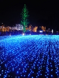 ミッドタウンガーデンの芝生広場に繰り広げられる一面のイルミネーションは今年もブルー基調で見事です。くるくると星雲が動く様子を表現していて、今年のテーマは「無限大の宇宙をモチーフにしたスターライトガーデン」なのだそうです。近寄って見てもきれいですが、ミッドタウンの窓から遠望するほうが宇宙的なイメージが感じられます。