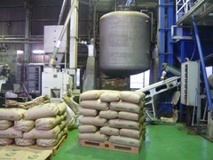 食べ終わった頃に、「工場見学」のご案内がありました。せっかくなので工場をみせてもらうことに。ご案内役の方が、まずは大豆を蒸している大きなタンク、小麦を炒っている機械のある部屋へ連れて行ってくれます。そして、大豆を発行させている酵母なども見せてくれました。