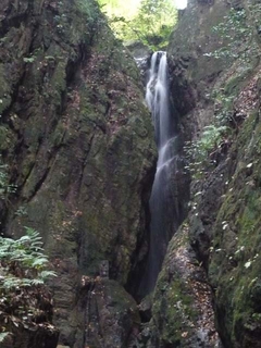 そこで、ちょっと足をのばして黒山三滝へ行ってきました。越生梅林を通り越してしばらく走ると滝へのゲートが現れます。天狗滝、女滝、男滝の三つを合わせて黒山三滝と呼ばれ、1950(昭和25)年には日本観光百選の「瀑布の部」で第9位に選ばれたことがあるそうです。そんなに有名な滝とは知りませんでした。