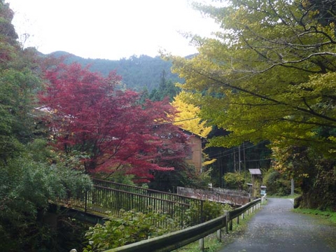 途中に「関八州見晴らし台」という道標があり、「関八州」にちょっと心ひかれて、「どのくらいで行かれますか?」と聞いたら、「1時間半ほど登れば……」と。それは、ちょっと無理です(-_-;) 足元が滑る、獣道のような道でしたから(笑) 紅葉の盛りになるまでには、あと10日ほどとか。それもつかの間ですぐ冬がやってくる……。このあたりは雪はめったに降らないでしょうが、冬の間は、ほとんどお店は閉めているそうです。そんなに山奥というわけではないので、お正月などには、お参りに来る人もいそうですね。
