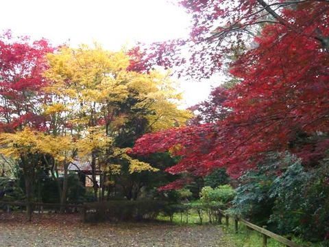 薬師池公園は町田を代表する大きな公園で、中央部には広々とした池があります。それで薬師池公園と名づけられているようです。池の周囲には梅林や菖蒲田などがありますが、いまは池の畔や周囲の雑木林の丘陵がさまざまな色の葉で染められています。鮮やかなが取り巻いている。もちろんその名の通り、野津田薬師と呼ばれる福王寺薬師堂も。